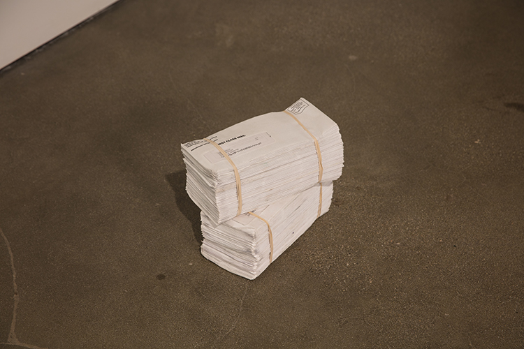 Debtors Prison, 2021 Two year collection of student loan bills, rubber bands 7 x 4 x 9” (17.78 x 10.16 x 22.86 cm)