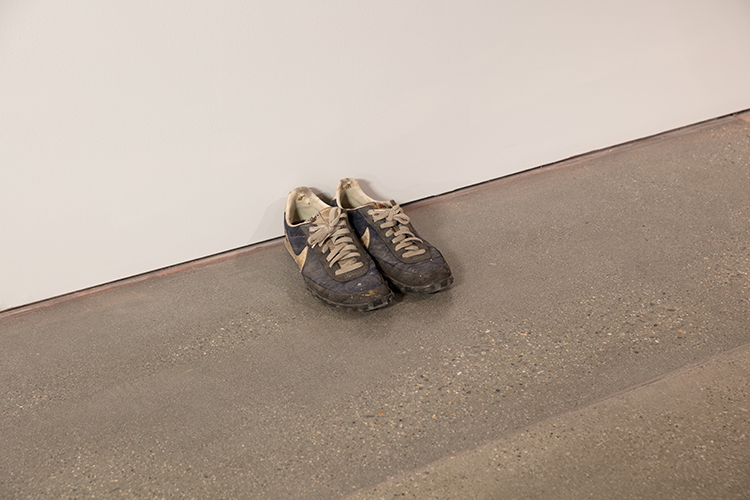 Momentary Printing-Press, 2021 Personal work/walking shoes (8 years) 4.5 x 8.5 x 11.5” (11.43 x 21.59 x 29.21 cm)